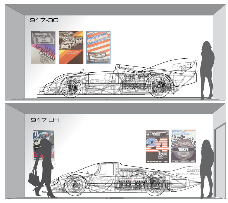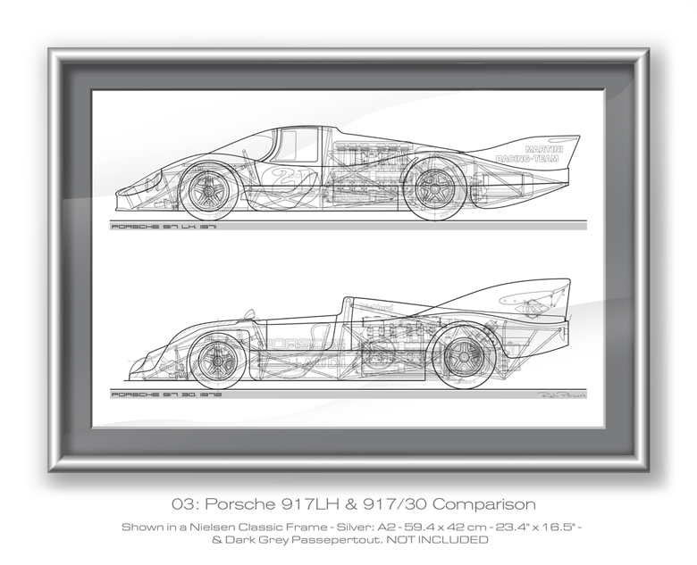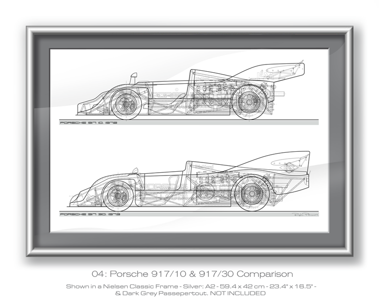 Porsche 917KH, 917LH, 917/10 & 917/30 (1971–1973) Comparison Layouts